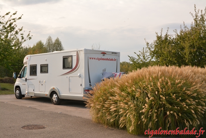 Lorsque nous y arrivons en fin d’après-midi, l’aire est complète. Les camping-cars sont collés les uns derrière les autres. Rien de bien bucolique ! L’endroit nous avait paru plus agréable lors d’un précédent passage !