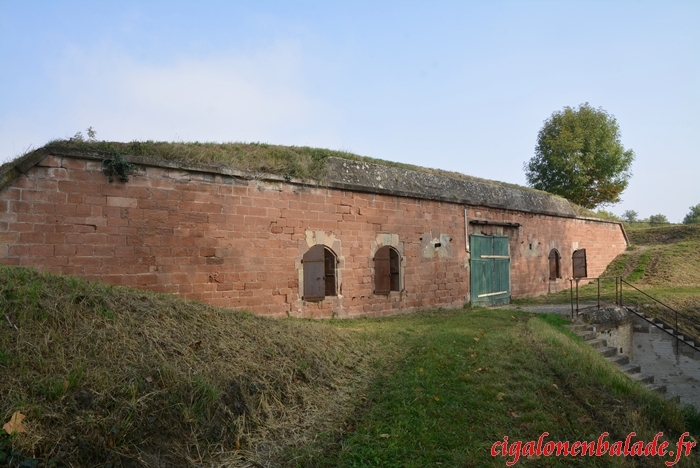 Nous longeons des courtines, passons devant une contre-garde. Chaque pièce du système défensif est expliquée sur des panneaux émaillés.