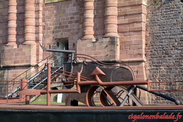 Nous regagnons le camping-car à travers les rues à angles droit. Le damier mis en place par Vauban permet de se repérer facilement. Au passage, Gabrinus, le légendaire patron de la bière, nous salue. Il serait le fils d’un certain Henri III et il s’est enrichi grâce à une amélioration qu’il a apporté à la fabrication de la bière en y ajoutant du houblon. Il orne l’ancienne brasserie annexe construite en 1899 par le célèbre brasseur allemand Riegel, de Kayserstuhl. La bière était vendue aux militaires de la forteresse. La brasserie a fonctionné jusqu’en 1945 puis a été remplacée par une fabrique de limonade qui a fermé ses portes en 1980. C’est l’actuel propriétaire du bâtiment qui a rénové la statue et les murs en 2004.