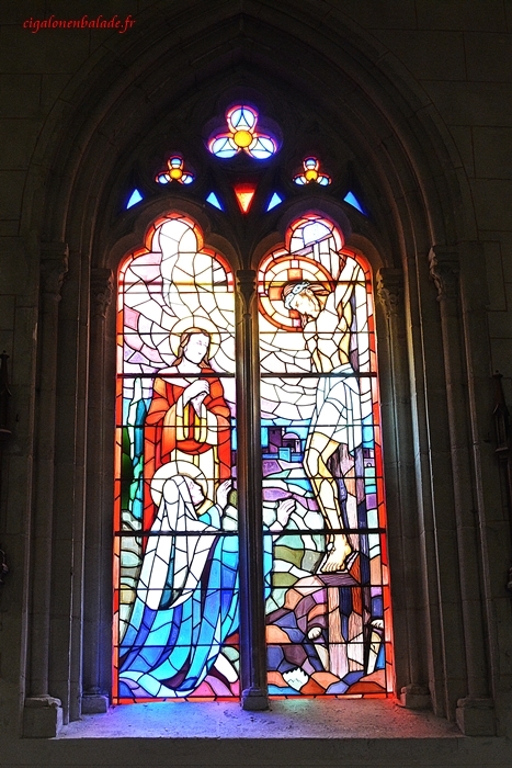 L’église Ste-Croix a une construction curieuse, un seul bas-côté qui la rend boiteuse et une nef accusant une pente de 9%…. L’orgue et l’autel majeur sont au même niveau ! Le curé ne peut pas abuser du vin de messe !