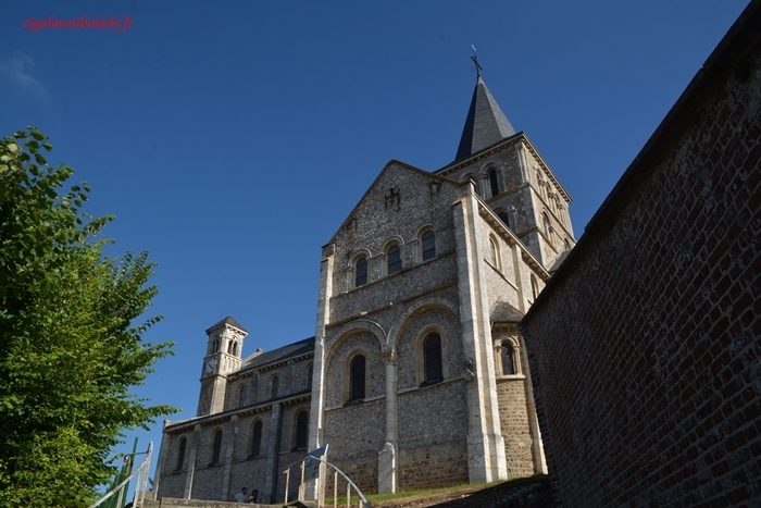 Le village est dominé par l'église St-Denis qu'on ne peut pas louper tant elle est imposante. C'est la réplique de l'église de l'abbaye St-Martin de Boscherville. Dommage, elle est fermée car j'aurais bien voulu voir les cinq statues déterrées récemment dont celle de St Denis portant sa tête, qu’elle abrite.
