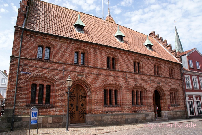 Nous retournons en ville et reprenons le circuit du veilleur de nuit. L’hôtel Dagmar, en briques brunes, reconstruit en 1581 après le grand incendie de la ville un an plus tôt, jouxte l’OT.