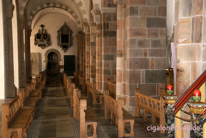 La cathédrale, construite entre 1150 et 1250, mêle intimement le style roman et gothique. Elle allie le tuf germanique aux briquettes rouges de la région. A l’origine, elle était équipée de deux tours carrées. L’une s’est écroulée lors de la messe de Noël en 1283.