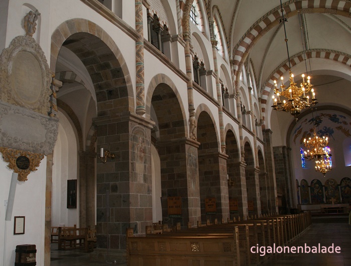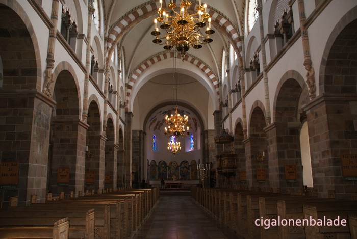Seule note moderne : les fresques en mosaïques dans le chœur, œuvre de Carl Henni Peterson.