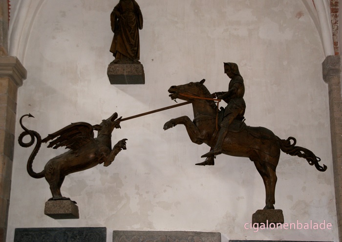 L’entrée de la cathédrale est gratuite. Seule la montée à la tour est payante... Très peu pour moi… mon sciatique fait encore parler de lui. Et pour Gabriel, il n’en est même pas question. Les longues promenades des derniers jours lui ont rappelé sa récente opération du genou !