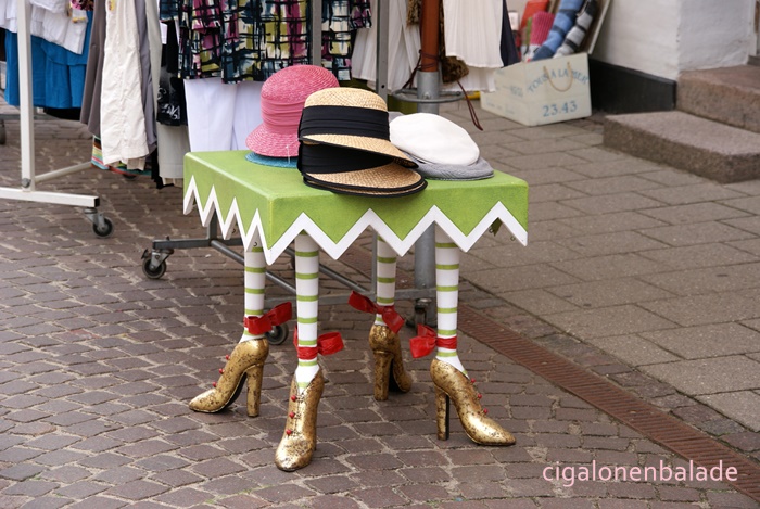Nous poursuivons notre balade dans la ville. Presque chaque maison est digne d’être photographiée mais nous découvrons aussi de drôles de choses : un guéridon kitch au possible et une vente de graines de plantes en libre service. Dépaysement garanti, je ne m’en lasse pas …. Seul Gabriel s’impatiente : il a faim !