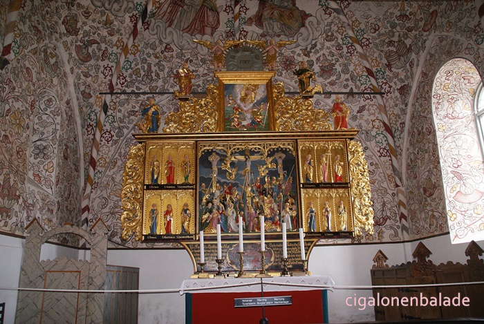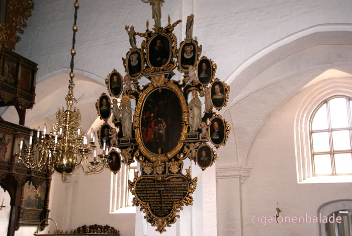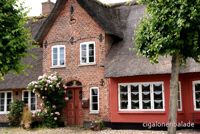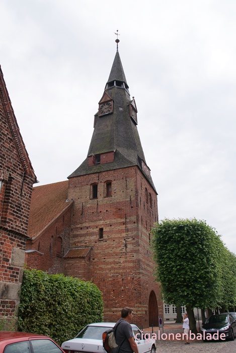 Nous aboutissons à l’église St Nicolas du XIIème siècle, entourée de son petit cimetière. C’est l'une des plus grandes du sud du Jutland et son clocher avec sa haute flèche octogonale servait de phare pour les marins dans les marais environnants. En 1680, une rue fut tracée à partir de l’église jusqu’au manoir.
