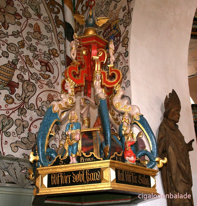 Pas vraiment à mon goût car la décoration intérieure est de style rococo ! Trop de fioritures, trop chargé, trop … Bref trop de tout sauf de couleurs car la plupart des boiseries sculptées le sont dans un bois sombre.