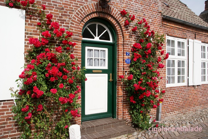 Les façades en briquettes rouge ou peintes sont souvent ornées de rosiers grimpants.