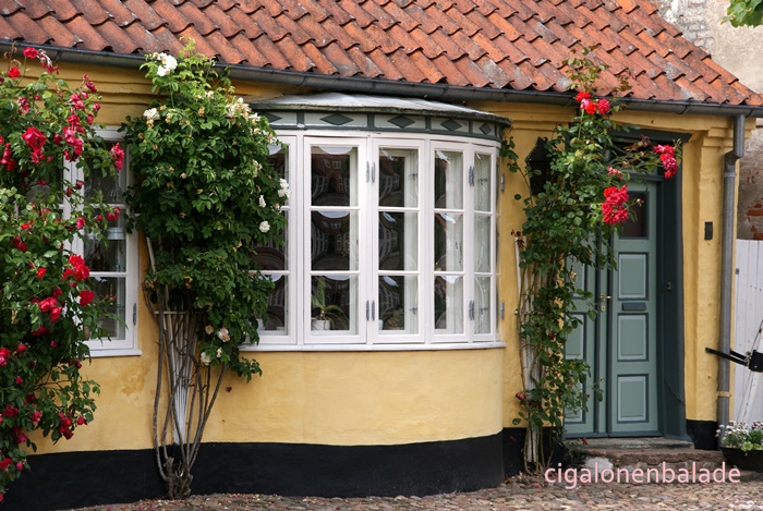 Nous terminons la visite par la plus vieille rue, l’Ulgade bordée par des maisons basses colorées et arborant des bow-windows. Le pavage de la rue vient d’être refait et une épaisse couche de sable le recouvre encore. C’est un quartier croquignolet dans lequel j’aurais pu rester de longues heures mais la fine pluie qui tombe par intermittence nous incite à retourner au camping-car avant d’avoir à affronter un déluge !