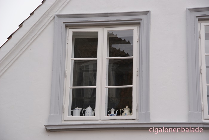 Aux fenêtres, pas de rideaux mais des objets de décoration hétéroclites ou rassemblés par thèmes. Certaines maisons ressemblent presque à un musée ou à une boutique d’objets de décoration. Et comme je n’arrive pas encore à comprendre ce qui est inscrit sur les plaques, je ne suis pas sûre qu’il s’agit toujours de maisons d’habitation.