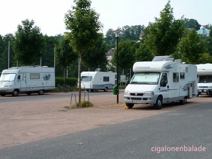 Située en face de la piscine, l’aire offre une vingtaine de places. Le paiement de la nuitée s’effectue dans le parc voisin mais à notre arrivée, il n’y a plus personne. Tant pis … ce sera nuit gratuite !