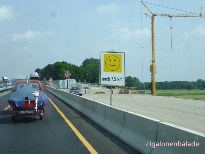 La température est nettement moins élevée qu’hier et il fait gris. A la circulation dense des voitures d’hier s’est rajoutée celle des nombreux camions, sans parler des embouteillages dus à des travaux !