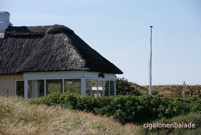 L’environnement sur la digue est bien particulier. La route est bordée à droite par les dunes et à gauche par le fjord. Les villages se nichent dans le sable, souvent en-dessous du niveau de la route et vraisemblablement en-dessous du niveau de la mer. De loin, on ne voit émerger que les toits. En se rapprochant, on distingue de mignonnes petites maisons avec des toits de chaume, de tuiles et de tôle. Elles ne sont pas toutes occupées et pourtant elles ne sont pas barricadées comme les nôtres lorsque qu’il n’y a personne.