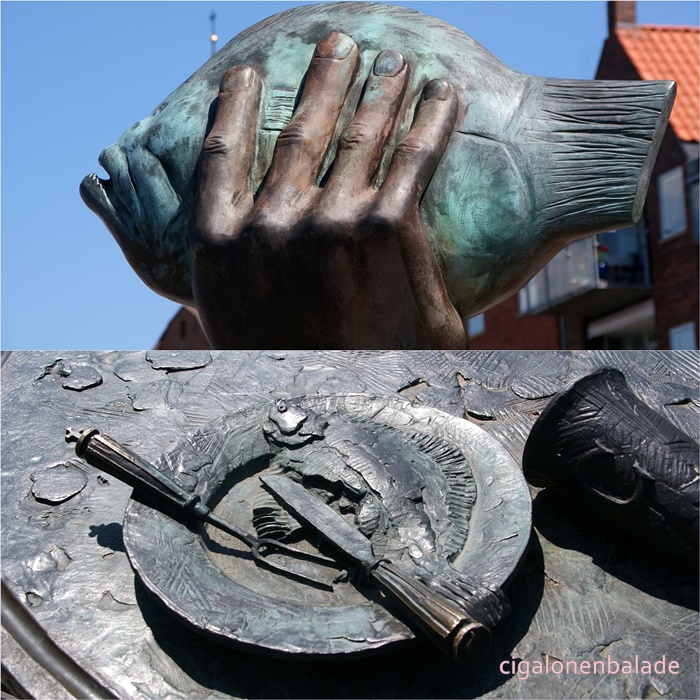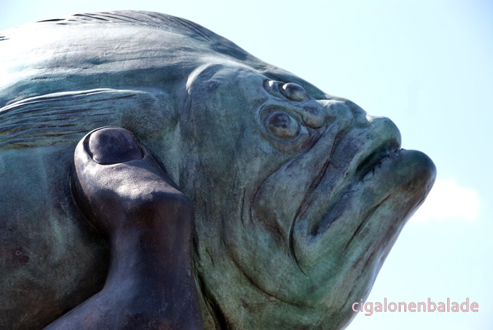 Des sculptures plus réelles que réelles rappellent que nous sommes ici dans un ancien village de pêcheurs.