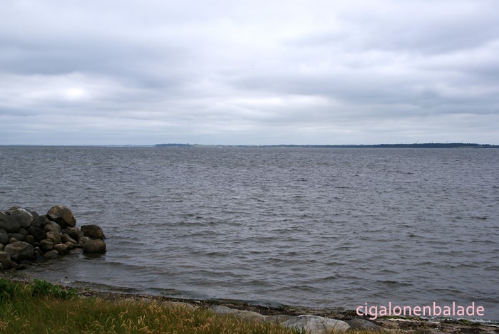 L’étape suivante nous mène à la falaise de Feggeklit, endroit où Hamlet aurait tué son oncle et son beau-père. Elle semble comme posée au bord de la digue qui mène au ferry.