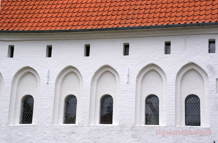 Aujourd’hui, c’est une incursion sur l’Île de Mors qui nous attend. D’une surface de 367 km², elle se situe dans le Limfjord et elle est rattachée à la terre par un pont levant qui enjambe le fjord. Le paysage change. A présent, se déroulent devant nous une succession de collines couvertes de cultures qui se terminent par des falaises tombant dans l’eau du fjord. Les fermes, disséminées ou regroupées en tout petits villages, n’ont plus le charme de celles rencontrées sur la digue de Ringkøbing.