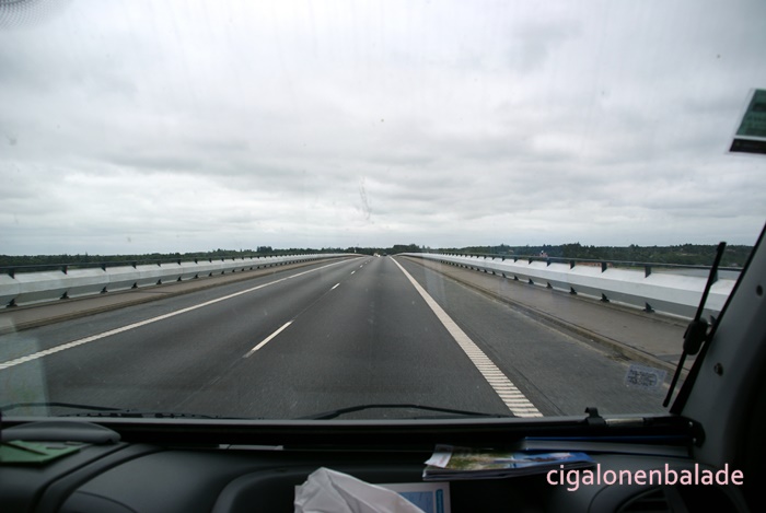 Une route étroite nous mène aux falaises de Hanklit. Heureusement que les Danois roulent lentement ! Un parking au bord du fjord accueille Cigalon.