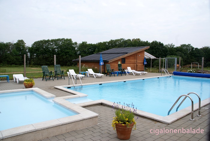 C’est le grand luxe : piscine et connexion par hotspot. Super … du moins pour internet car pour la piscine, c’est loupé ! La température du jour avoisine les 16°. Frais par rapport à dimanche où nous avions 32° !