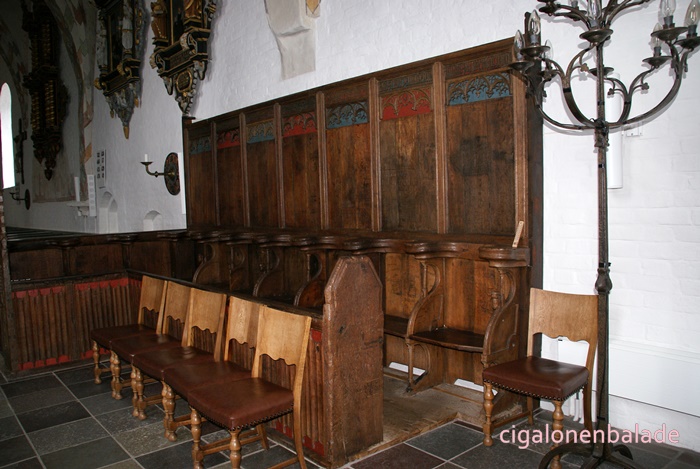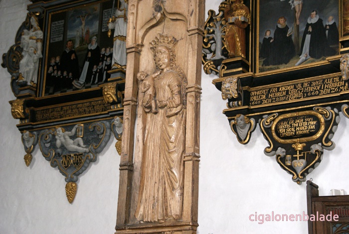 Les murs et le plafond sont recouverts de nombreuses fresques représentant des passages de l'Ancien et du Nouveau testament. Peu de temps après l’achèvement des transformations de l’église, en 1536, le Danemark adopte la Réforme et les monastères sont fermés. Outre l’église qui est conservée, les bâtiments du monastère de Sæby sont détruits. Les fresques, alors recouvertes, n’ont été remises au jour et restaurées qu’au début du XXème siècle (1905-1906).