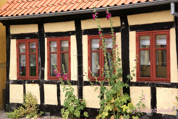 Depuis le port, nous rejoignons rapidement l’Ulgade bordée de coquettes maisons basses du début du XVIIIème siècle. Certaines sont adorables avec leurs roses trémières.