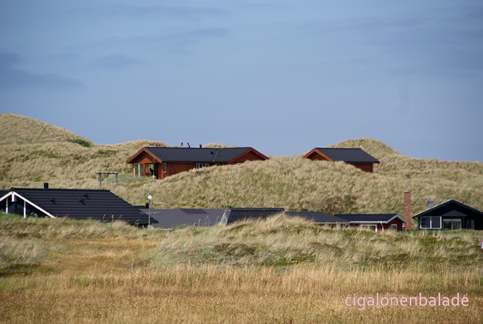 Les dunes se succèdent laissant apparaître de-ci-de-là quelques toits de maisons.