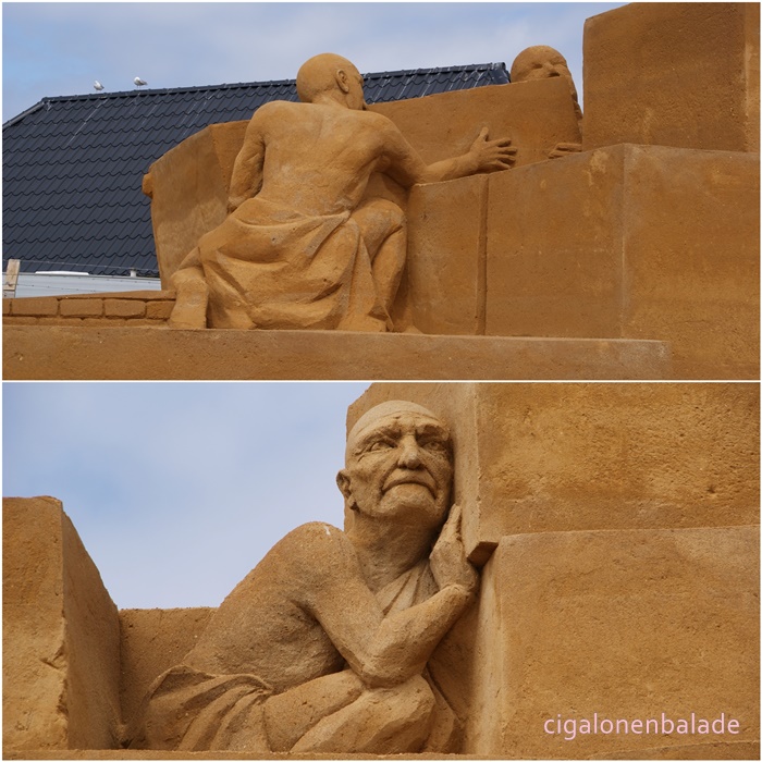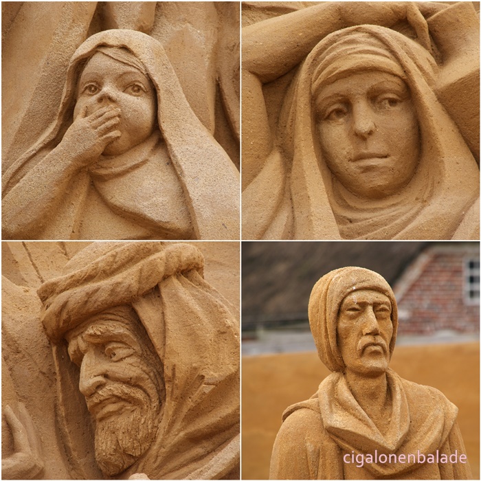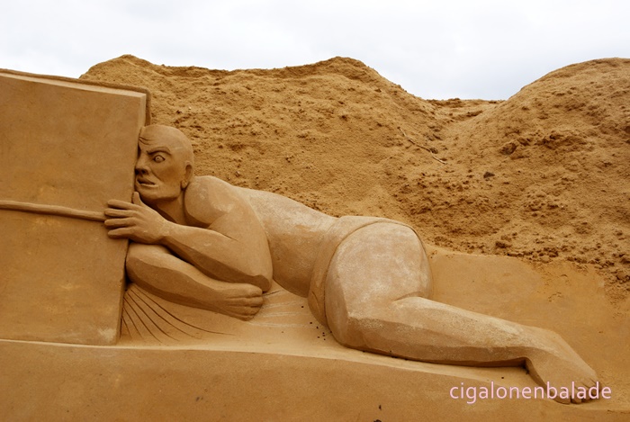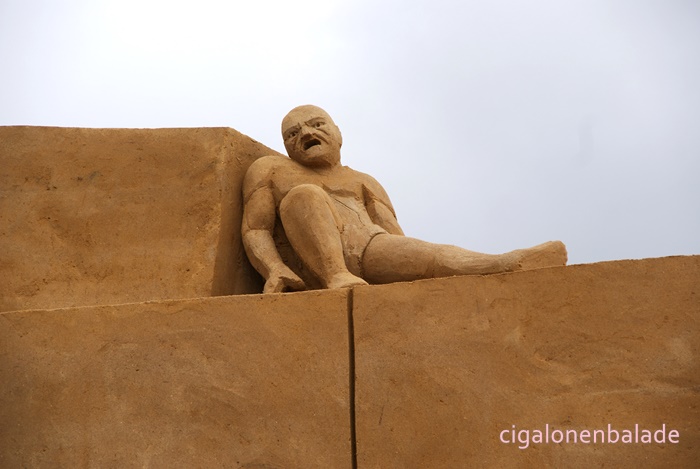 On pourrait se poser la question si le sable ne se désagrège pas lorsqu’il pleut. Non, car l’eau se contente de s’infiltrer dans le sable qui est déjà humide. Les sculptures sont destinées à durer trois/quatre mois selon les conditions météorologiques (vent et pluie).