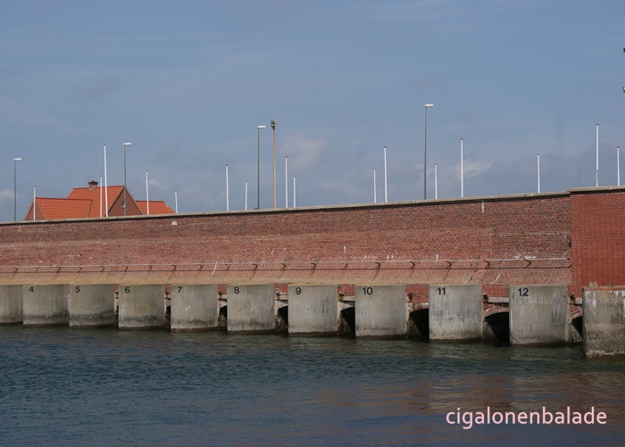Nous ne visitons pas le musée consacré au St-Georg, bateau britannique qui a coulé au large de Torsminde en décembre 1811 lors d’un ouragan et préférons traverser le chenal en franchissant l’écluse et nous rendre au port de pêche.