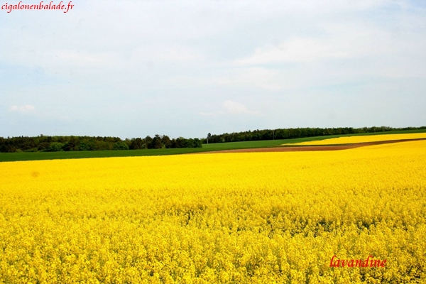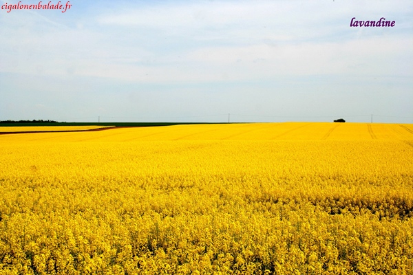 Des champs jaunes de colza à perte de vue. Je découvre que le colza dégage une forte odeur pas très agréable.