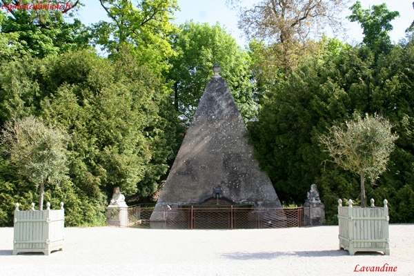 Outre le château, le domaine comprend de vastes écuries, une ferme sur cour et une curieuse pyramide gardée par deux sphinx.