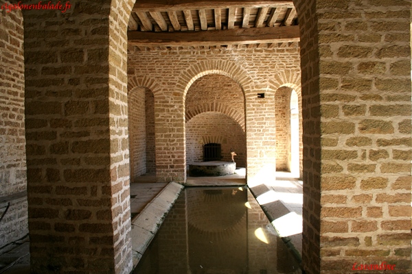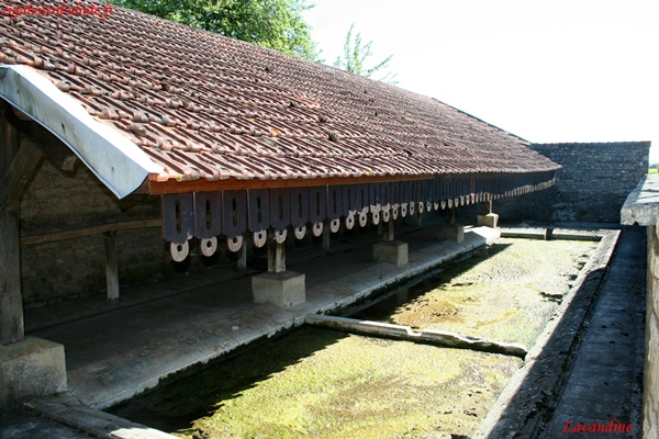 Le lavoir en impluvium, tout à côté de l’écluse est fermé mais une grille en fer forgé permet de voir l’intérieur. Les deux pans du toit sont soutenus par six poteaux en chêne. L’eau arrive dans le bassin par un robinet en col de cygne alors que jusqu’à présent l’eau est toujours arrivée par le bas. La construction du lavoir est postérieure à celle du canal.