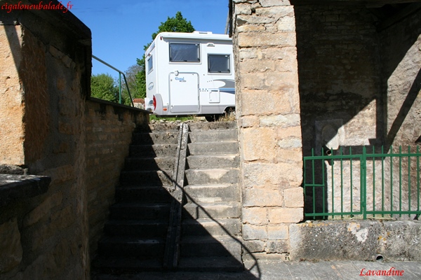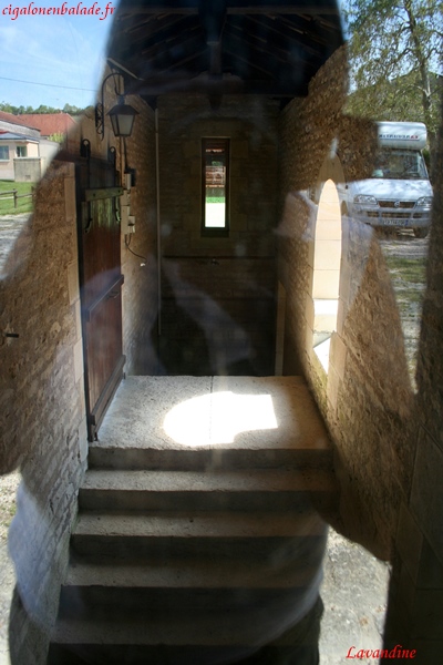 Une autre curiosité de ce lavoir, c’est la rigole qui sépare en son milieu l’escalier qui descend au lavoir, rigole prévue pour la roue de la brouette de la lavandière.