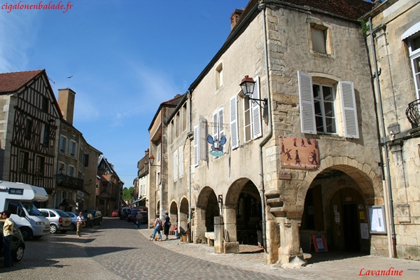 L’étape suivante est Noyer sur Serein, classé un des plus beaux villages de France. La ville a été fortifiée et il reste encore des traces comme la porte d’Avallon ou porte peinte pour accéder au centre village ou encore les remparts où nous cherchons le frais. Le village a gardé son aspect moyenâgeux avec ses rues pavées et ses maisons à colombages.