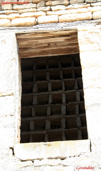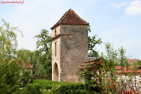 Par contre, derrière l’église, je découvre le pigeonnier mentionné sur notre fiche. C’est un pigeonnier tour à angles droits, en assez piteux état. A travers les ouvertures, on voit encore les nids creusés dans le mur. Pas de tablette d’envol. Rien de comparable avec les pigeonniers de l’été dernier !