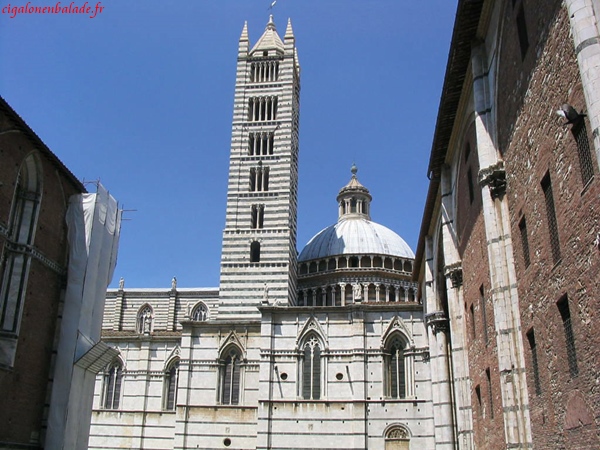 L’église San Dominico (XIIIème -XVème siècle) domine la troisième colline de Sienne. Elle est imposante par sa couleur rouge, ses hauts murs et son clocher crénelé.