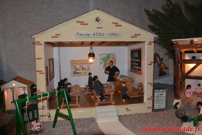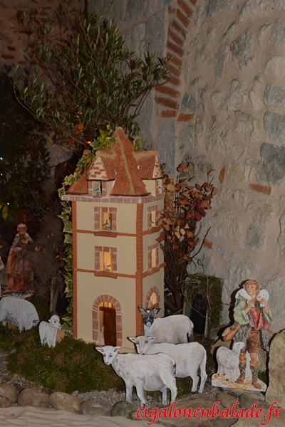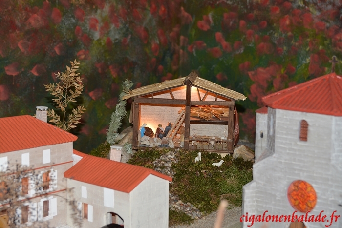 C’est à droite que l’on trouve la crèche est intégrée au village.