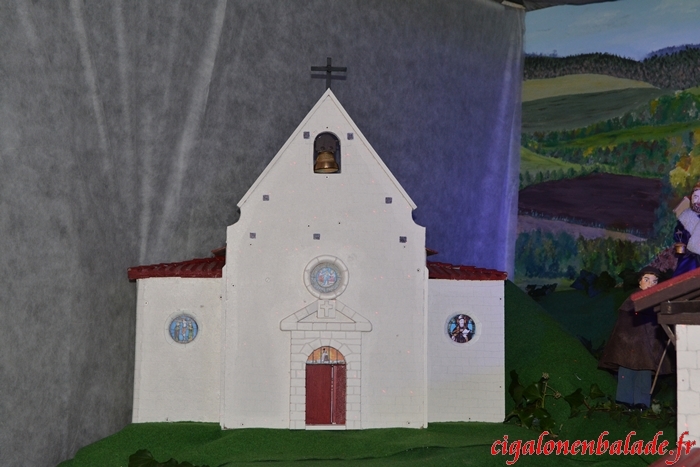 Nous voici à l’église St-Clair à Cardonnet où un berger à taille humaine nous accueille avec son troupeau qui partage la paille avec la basse-cour.