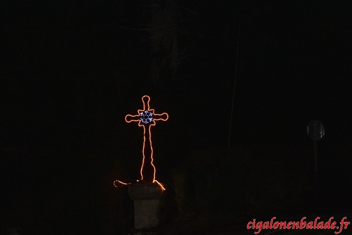 Nous traversons la campagne lot et garonnaise plongée dans le noir le plus complet d’où émerge néanmoins un tout petit point lumineux, une croix en fer.
