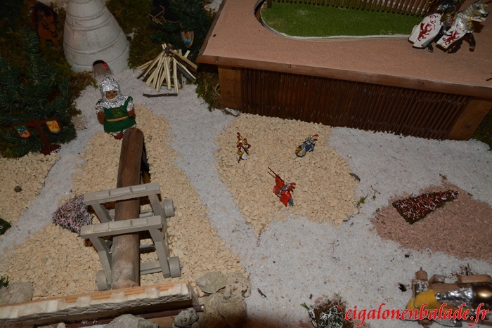 À gauche, la représentation de l’évolution du château-fort au moyen âge. Cette scène est assez difficile à prendre en photo car elle a été mise derrière une vitre, la faute aux voleurs de pacotilles - comme nous l’apprenons pas une petite affichette - qui ne trouvent rien de mieux que de prélever des sujets.