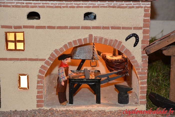 Plus loin, le forgeron fabrique de nouveaux fers que le maréchal-ferrant attend avec impatience.