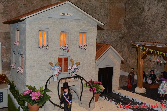 Face au village, la mairie. Le premier magistrat attend de futurs mariés.