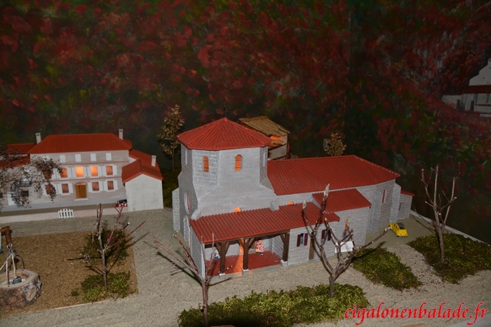 La crèche a été montée sous le porche. Une maquette nous permet de nous imaginer l’édifice en temps normal.