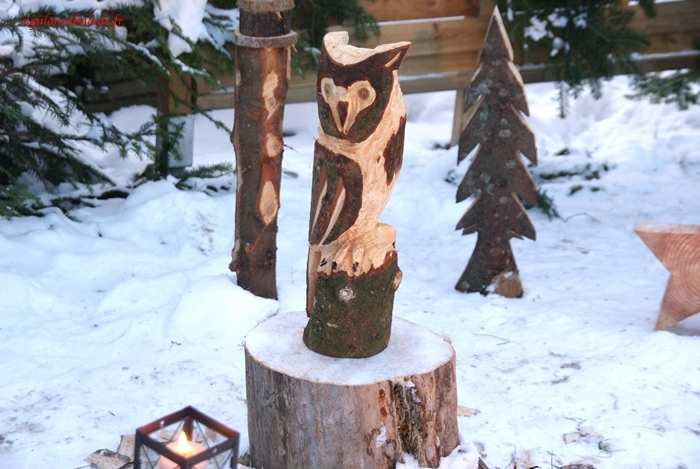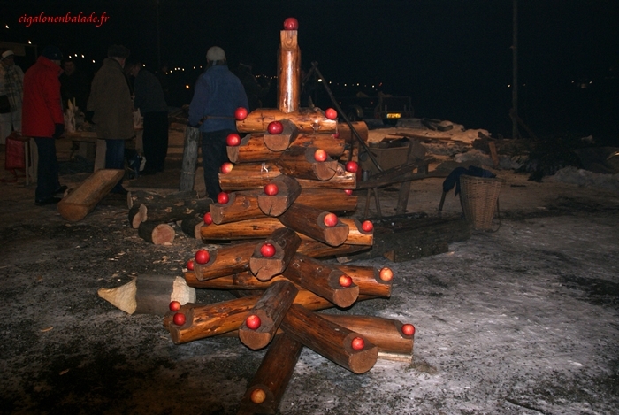Au pays des mystères, nous nous arrêtons une fois de plus devant le sapin fabriqué en buches. Dommage, toujours en exposition, il n’est jamais à vendre ! Le froid se fait plus insistant et nous accélérons le pas.