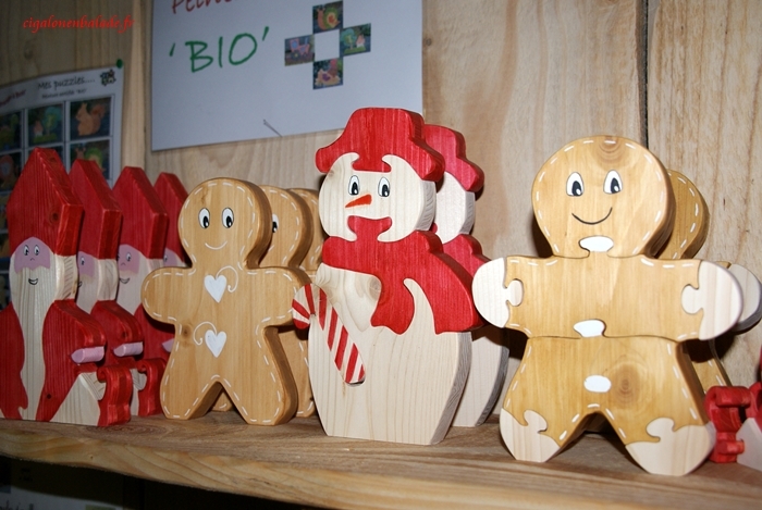 Un peu plus loin des sculptures sur bois et des jouets « bio ».
