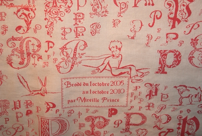 Le pays des étoffes laisse la part belle aux broderies au point de croix, aux ouvrages en patchwork. L’abécédaire sur la lettre P dont nous suivons l’évolution depuis 2005 est enfin terminé. Cinq années de travail !
