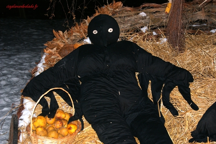 Avant de quitter le site, nous croisons des corbeaux allongés sur de la paille. Ils rappellent que les habitants de Bassemberg sont appelés "d'Krabbe", les corbeaux.