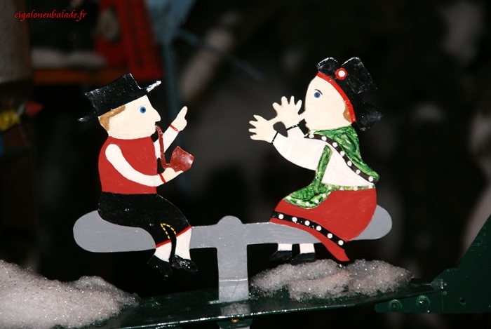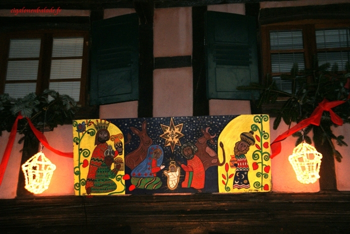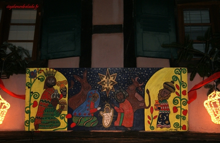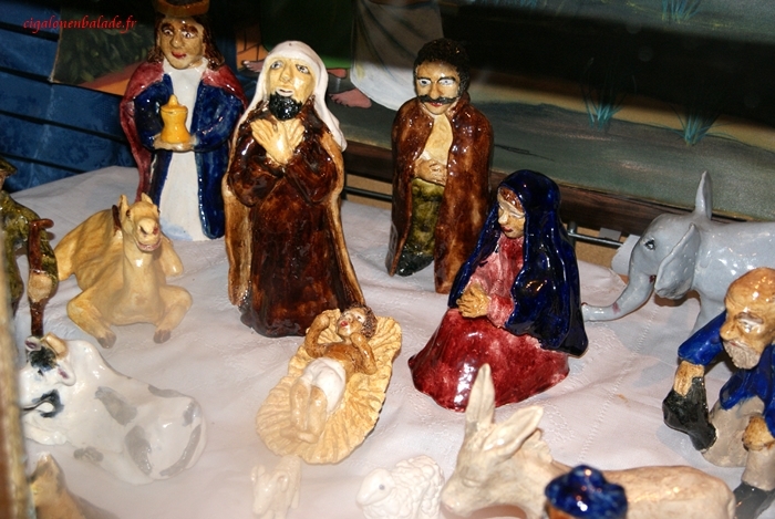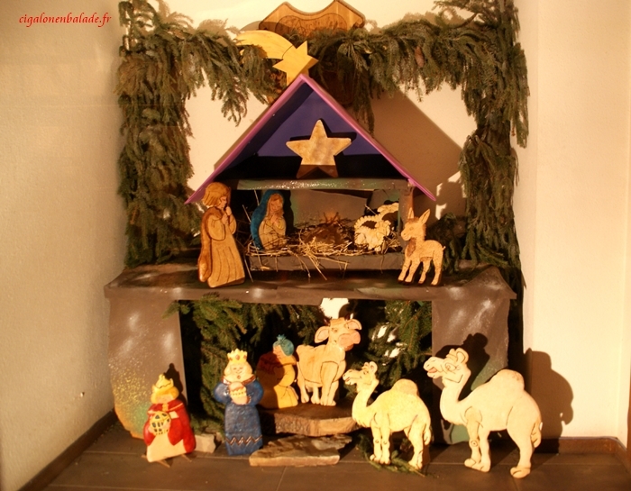 Tout le long du parcours, les crèches ne manquent pas ! Des contemporaines, des traditionnelles, des régionales, en pâte à sel, en céramique, sculptées dans du bois… Mon appareil photo en capte quelques-unes !