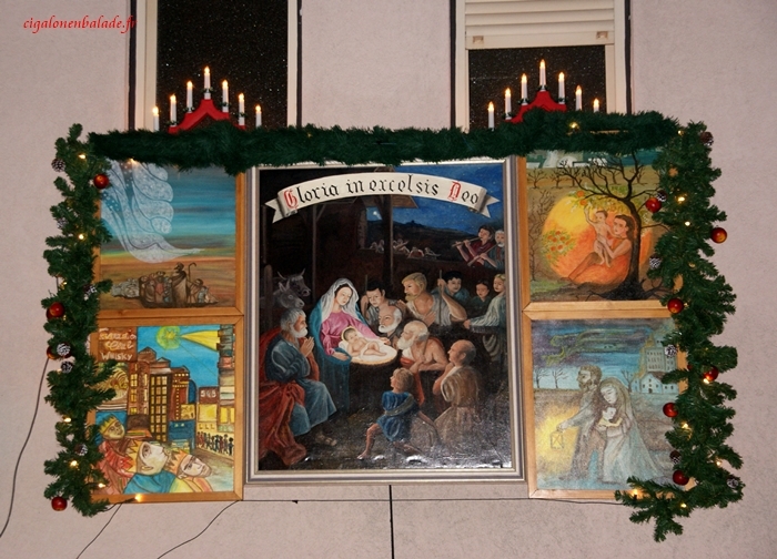 Ici on n’oublie pas que Noël est avant tout un temps du calendrier liturgique et les décorations religieuses occupent une large place.