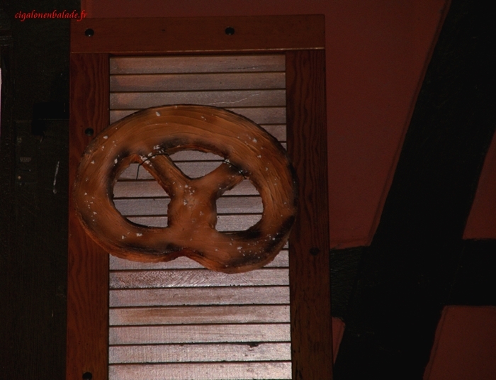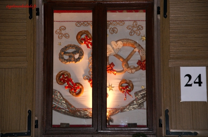 Quoi de plus naturel pour le boulanger que de présenter ses réalisations en pâte … à sel ! Bretzel, cœurs, couronnes, angelots … ornent les fenêtres de la boulangerie et ses volets.