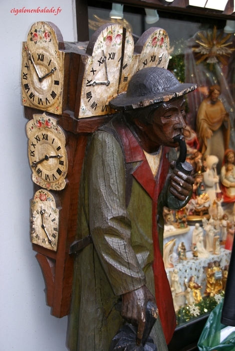 La statuette en bois du colporteur aux horloges rappelle que nous sommes ici pas très loin de la Forêt-Noire